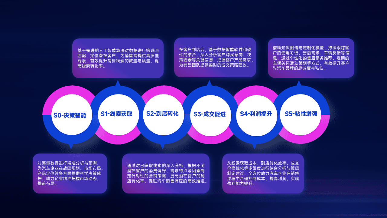 通过拓宽潜在客户来源、、、、优化线索分配并提高到店转化率,,,以增强销售效率。。。同时,,利用线索数据不断优化分析模型,,有效提升转化率,,扩大营销影响力。。